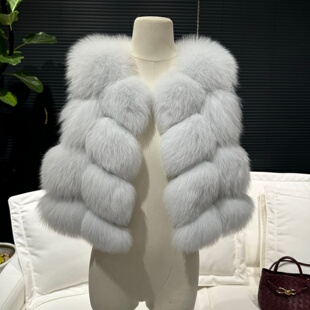 貉子毛马夹修身 款 狐狸毛皮草马甲女秋冬时尚 加厚款 100%真皮草