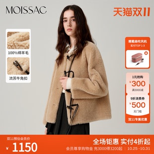 摩萨克冬100纯绵羊毛暖咖牛角扣短款 外套上衣女