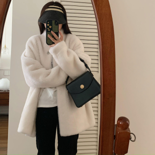 复古格调中古仿水貂毛中长款 冬 皮草外套环保皮毛一体大衣女年轻款