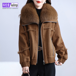 獭兔毛皮草外套女2025冬新短款 休闲洋气质狐狸毛领真皮毛一体大衣