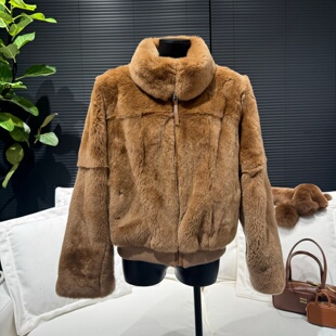进口雷克斯獭兔毛皮草毛毛外套立翻领两穿新款 Anna兔兔