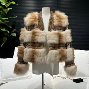 浮光鎏金 重工小众青根貂拼接银蓝狐狸毛皮草外套女短款