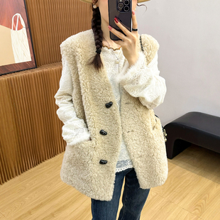 颗粒绒皮毛一体皮草马甲女欧洲站2025冬装 欧货绵羊毛短外套潮 新款