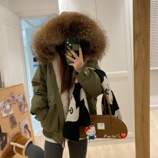 宽松韩版 90白鹅绒羽绒服新款 貉子毛领派克服外套女 潮牌派克 特价
