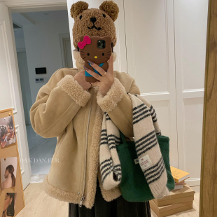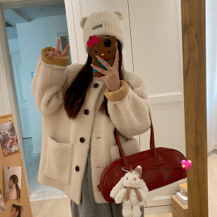 • 羊羔毛大衣冬季 甜美一体保暖新中式 海宁颗粒绒皮草外套女短款 新款