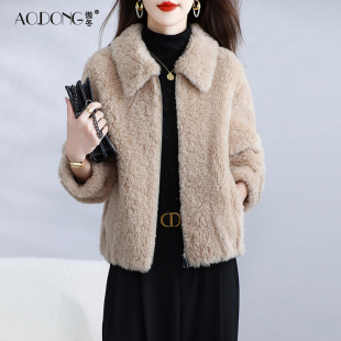 海宁颗粒绒皮草外套女短款 羊剪绒一体保暖拉链妈妈羊羔毛大衣冬季