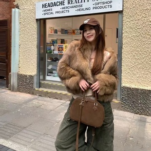 2025冬新款 V领皮草外套环保毛毛宽松貂绒大衣女 气质仿水貂毛开衫