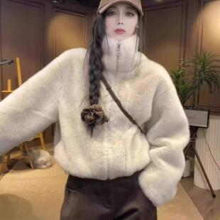 仿天鹅绒貂皮大衣皮毛一体立领短款 毛毛外套 水貂绒环保皮草女冬季