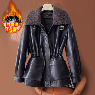 机车毛领洋气皮夹克 时尚 海宁爆款 真皮高端加厚皮衣外套女2025冬季