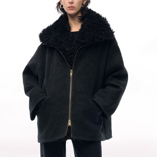 DVZ2025冬季 复古翻领环保羊驼皮毛一体保暖皮衣外套女1957 新款