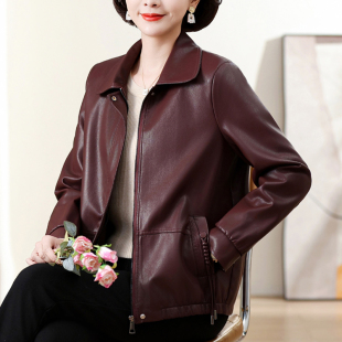 皮衣外套女2026秋冬妈妈春装 皮夹克洋气休闲中年妇女人PU皮上衣服