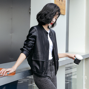 女士绵羊皮宽松修身 新款 小个子皮夹克外套 秋季 海宁真皮皮衣女短款