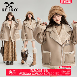 • 复古加绒夹克棉服 羊羔毛复合一体皮衣外套冬季 KEIKO 环保皮草