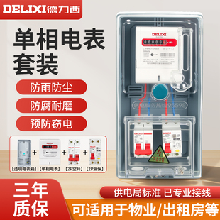 德力西单相成套电表箱户外家用明装 配电220V 出租房防水透明挂壁式