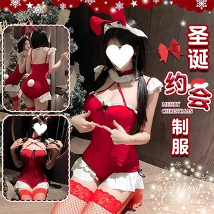 性感cos女仆装 红色圣诞战袍礼服氛围感蕾丝吊带连衣裙女秋冬穿搭