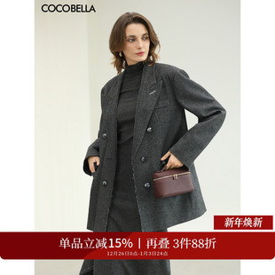COCOBELLA格雷系灰色手工贡针毛呢西装 女秋冬通勤廓形外套SI3009