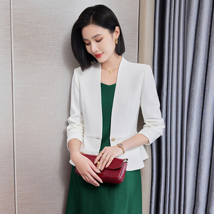 气质播音员主持人连衣裙两件套 外套女春秋新款 高端无领西装 短款