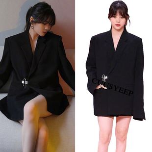 欧阳娜娜明星同款 西服外套女 早秋炸街黑色休闲设计感高级中长西装