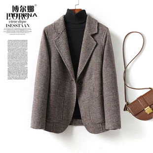 高级感双面羊毛女西装 气质格子2025年新款 修身 毛呢西服女外套短款