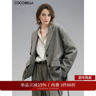 外套女2025冬新品 LANDI深灰色绵羊毛复古通勤收腰西装 商场同款