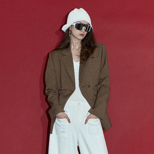 女冬设计感外套 棕红波点一粒扣宽松廓形西装 ourhour 自带氛围感