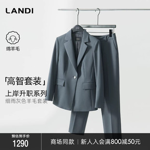 外套女2025秋新品 高智系列LANDI细雨灰色绵羊毛西装 商场同款