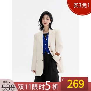长袖 气质通勤正装 上衣 外套女小个子西服春秋新款 KBNE米色休闲西装