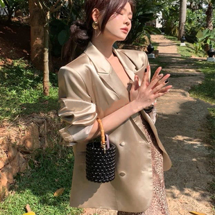 西服休闲气质高级感韩系上衣 新款 香槟色名媛小西装 外套女2025秋季