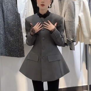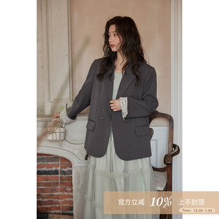 • 9折 外套 夕蒙2025春秋小个子设计感高级小众独特蕾丝拼接灰色西装