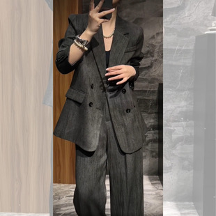 高级感炸街宽松廓型气质西服 新款 灰色西装 外套女小个子2024春秋季