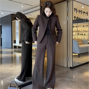 长袖 西装 轻熟风宽松阔腿裤 胖mm春秋时尚 西服 套装