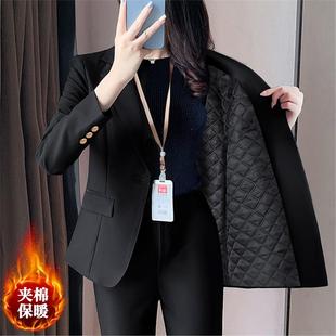 西装 夹棉工作服加棉加厚保暖正装 职业女黑色厚款 秋冬外套西服套装