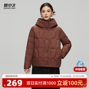 简约时尚 连帽羽绒服妈妈款 纯色暖御寒 女士短款 雪中飞2025冬新款