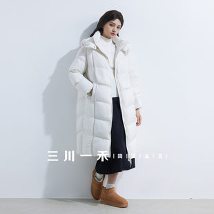 三川一禾简法主义女士长款 白鸭绒外套上衣 连帽羽绒服2025冬新款
