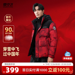 新年红羽绒服拼接面包服时尚 短款 加厚中国红 男士 雪中飞2025冬新款