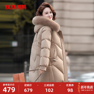 狐狸毛领妈妈装 中老年加厚中长款 外套S 新款 鸭鸭羽绒服女2025冬季