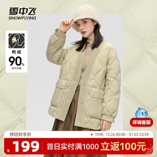 菱格鸭绒保暖 大V领羽绒服廓形时尚 雪中飞2025秋冬新款 女士短款