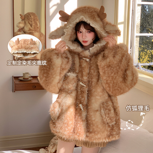 森女部落甜美可爱毛茸茸猫咪连帽卫衣女加绒加厚毛绒外套冬季 女装