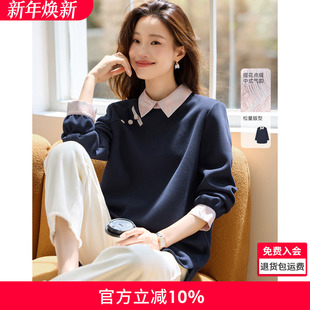 洋气女装 翻领卫衣女春秋薄款 爆款 春季 假两件polo领上衣 2025年新款