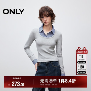 人像印花宽松圆领落肩卫衣女 时尚 12519S015 新款 ONLY2025秋季