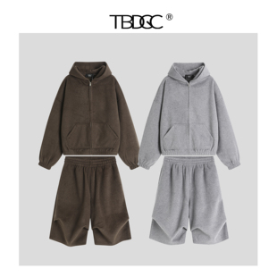 • TANG TOWN自制INS爆火时髦率性水洗做旧废土风宽松连帽休闲短卫衣