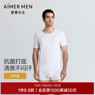 V领2025年秋冬 抗菌T恤打底短袖 2件装 爱慕先生60支莫代尔净痕男士