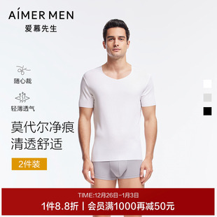 V领秋冬轻薄 T恤打底上衣短袖 2件装 爱慕先生60支莫代尔净痕男士