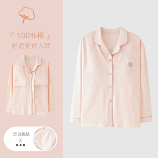 长袖 全棉睡衣女款 自带胸垫上衣单件开衫 防凸点春秋季 纯棉 2025新款