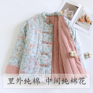 女士花棉袄手工盘扣 复古中国风棉衣保暖棉服秋冬加厚夹棉新中式