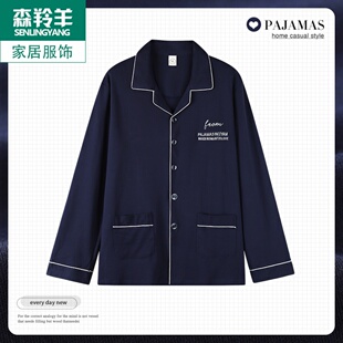 上衣薄款 t恤睡衣男装 2024新款 长袖 春秋纯棉家居单衣 男士 单件开衫