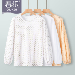 圆领家居服 纯棉妈妈睡衣女单件套头老人宽松长袖 中老年夏季 薄款