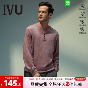 安莉芳旗下IVU酒红色棉质休闲上衣男长袖 V领可外穿家居服UF00080