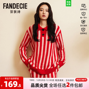 芬狄诗睡衣女条纹半边绒家居服上衣FL00453 FL00454