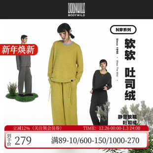 宽松睡裤 宝迪威德秋冬薄吐司绒休闲条纹情侣男女士家居长袖 上衣